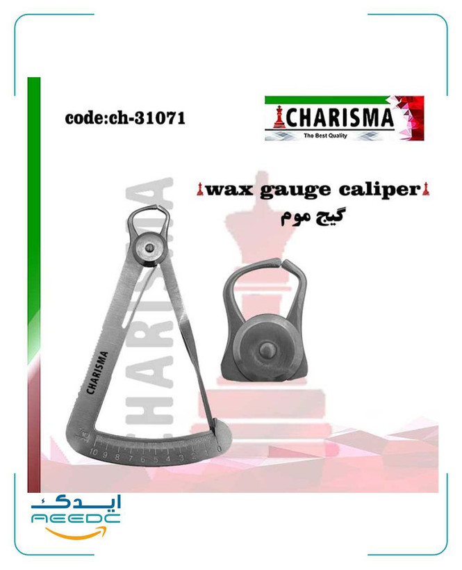 توضیحات: گیج موم برای بررسی تقارن در جراحیهای زیبایی مورد استفاده قرار میگیرد. - کارایی: گیج وسیله ای برای اندازه گیری ضخامت موم و یا فلز است. چون حداقل و حداکثر ضخامت فلز و موم در کار پروتز بسیار اهمیت دارد از گیجهایی استفاده می کنیم که ضخامت فلز را در فریمها اندازهگیری میکنند. گیجهای فلز معمولا نوک تیز و گیجهای موم سطح تخت و پهنی دارند و به صورت کمانی بوده و روی کمان درجه بندی و میزان ضخامت را با اعدادی بین یک تا ده میلی متر نشان می دهد